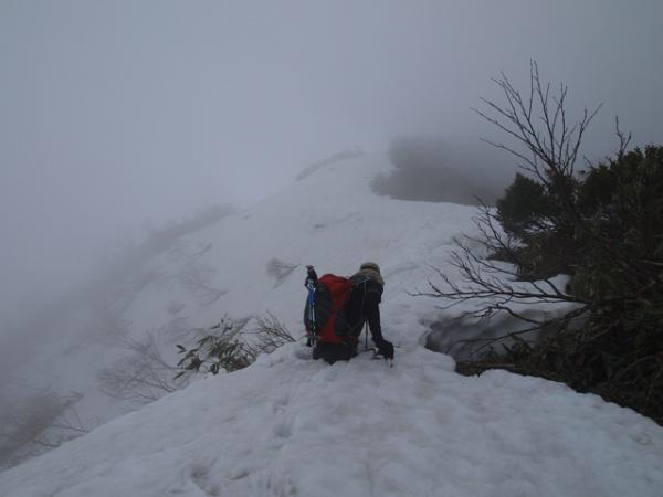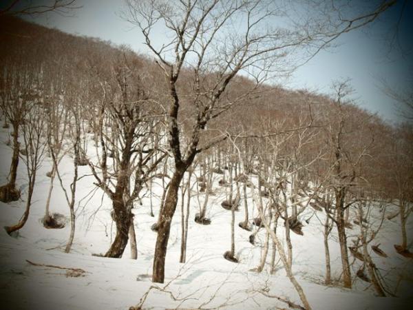 雪は上の方でも溶けかけで、時々足がズボッとはまりました。