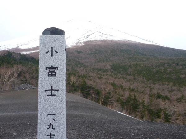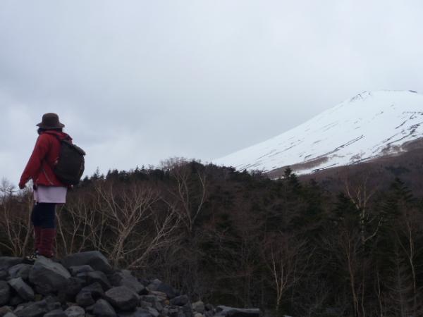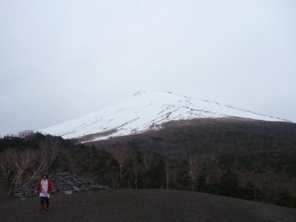 振り返るとまだたっぷりの雪を抱えた富士の峰。