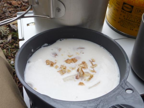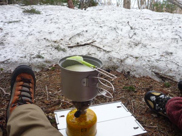 樹林帯まで戻ると冷たい風も防げるので、ストーブを出してひと休み。。