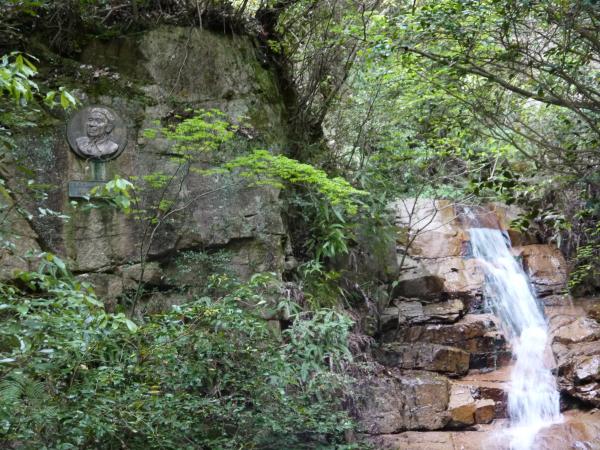 登山口の高座の滝をスタートし数分の分岐、皆ロックガーデン方面へ向うなか、私たちは右手の高座谷へ進みます。白髪の高齢イノシシをはじめ、4頭のイノシシに遭遇、、、刺激しないように通過します。キャッスルウォールにはクライミングのパーティーがいらっしゃいました。