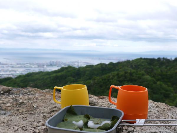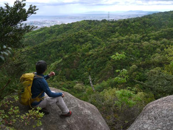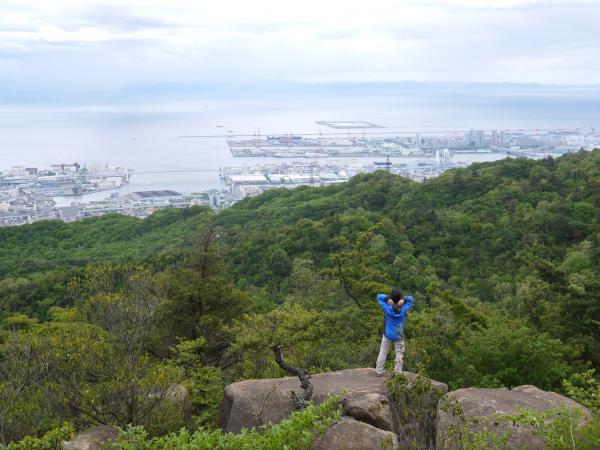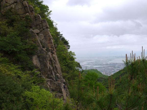 さらに進み黒岩(大きな松が1本)でランチ。ちょっと雨がパラつきましたが市街地や大阪湾、その先に紀伊半島、西に淡路島が展望できしばし見惚れます。荒地山頂上は展望が利きませんのでさっさと下り、テーブルロックでティータイム。このころまた雨が・・ 小雨でも岩は滑りやすくなるため慎重に下山しました。