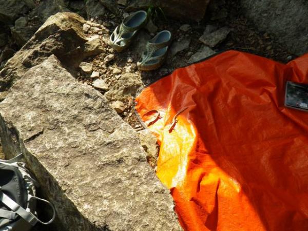 駒形岩のプロミネンス(5.11b)をやりたかったのですが、前日の雨で染み出しが多くて断念。