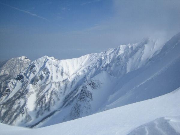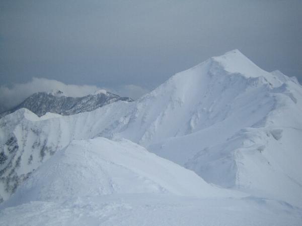 トレースもしっかりついており、10本爪アイゼンで悠々歩けました。スノーシューでサクサク歩く人を見ると少し羨ましく感じるくらいです。