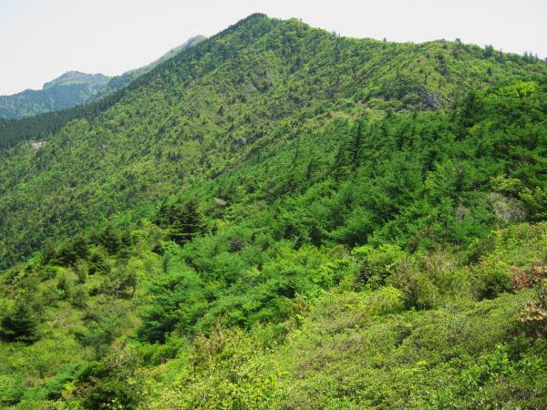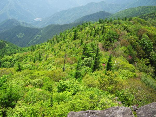 アケボノツツジが有名で期待していたのですが 既に終わっていて少ししか咲いていませんでした。ツガザクラ、アカモノがたくさん咲いていました。かぶと岩からの道は 樹林の中でほとんど展望はききませんでした。急坂で片斜面だったり、熊笹でおおわれていたりで登りには使いにくい道です。別子銅山の遺跡があちこちにあり興味深いです。
