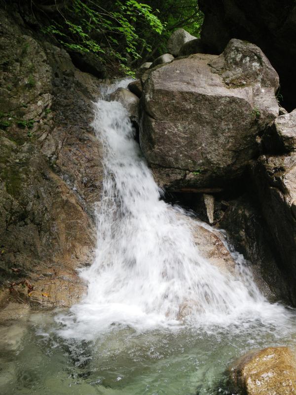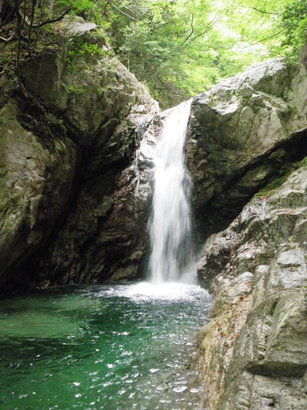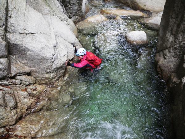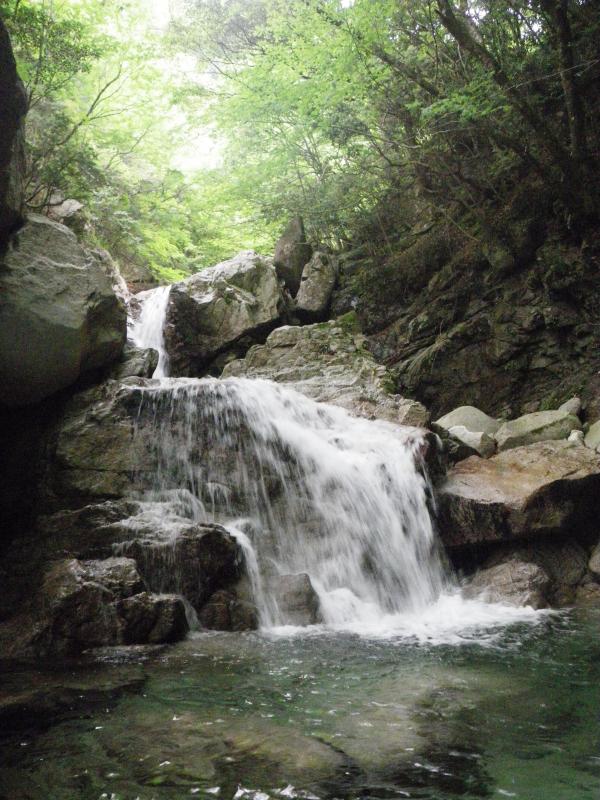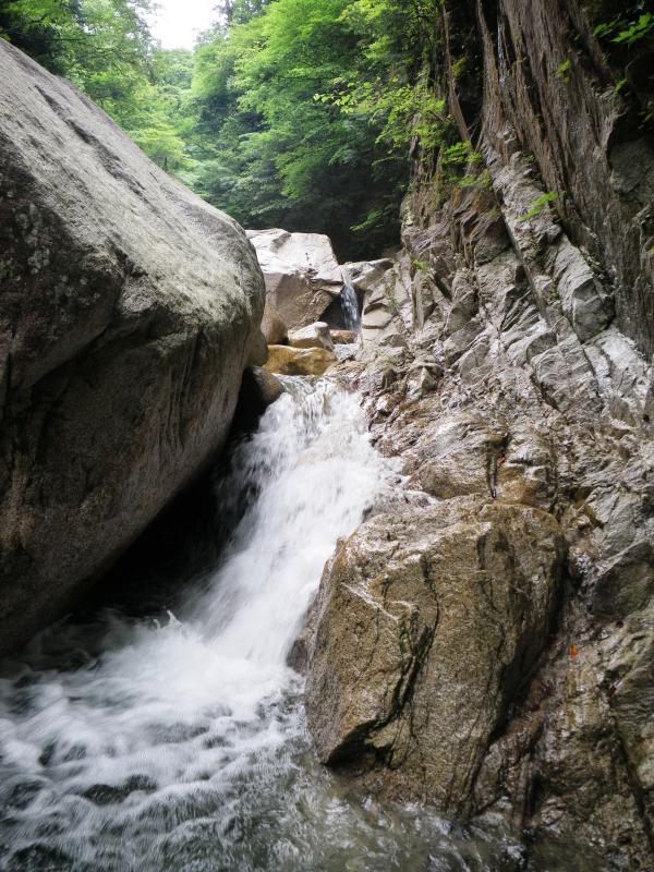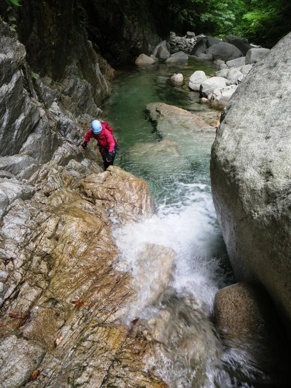 入渓場所を確認するのに手間取ってしまったので、今回は10m滝で遡行を中止してキャニオニングで降りてきました。