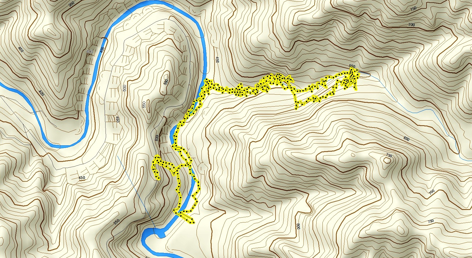 - 駐車スペース-5分-神崎川本流-20分-仙香谷出合-69分-10m滝-37分-仙香谷出合-20分-駐車スペース
