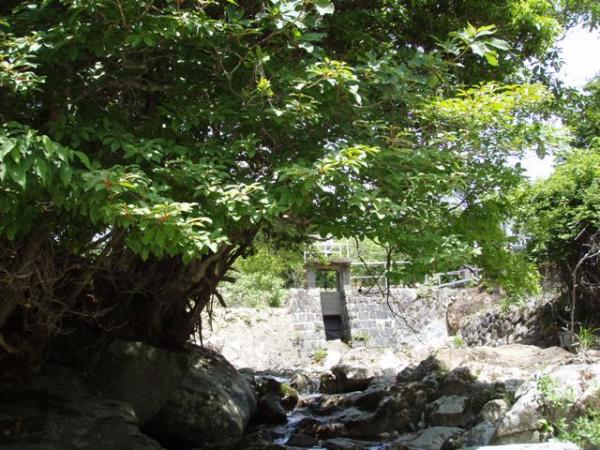 駐車場を出て橋を渡り、しばらく沢に沿って森を歩くと左手に堰堤が出現。ここが遡行開始地点。