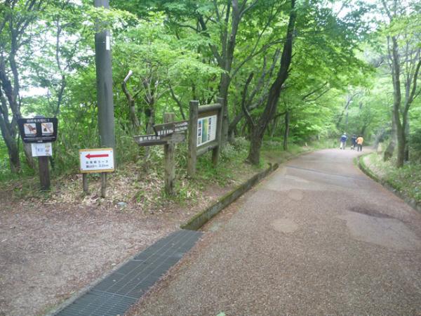 - 葛城ロープウェイ前(0:10)くじら滝分岐(1:20)ダイヤモンドトレイル分岐(0:30)山頂(0:15)分岐(0:50)北尾根分岐(0:30)葛城ロープウェイ前