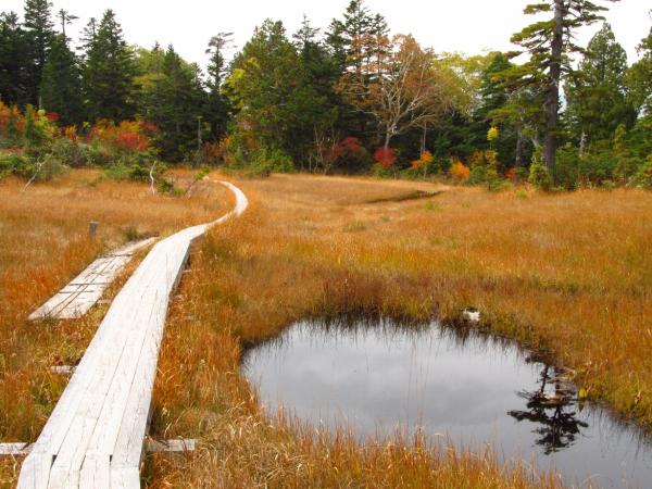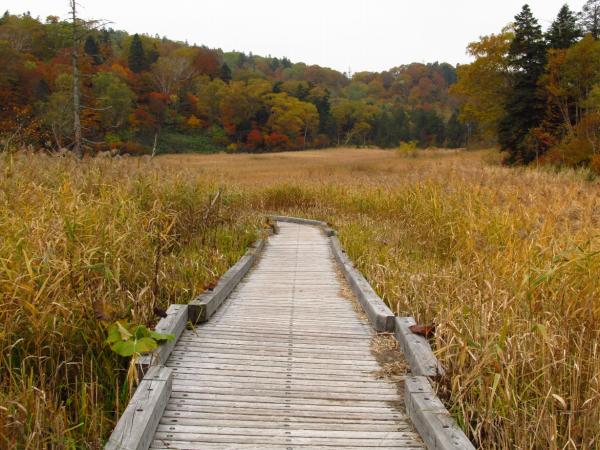 スタートから燧裏林道は、大きな登り下りもありません。たびたび現れる湿原を楽しんだり、ブナ林の中を歩いたりと、ここだけで今回の目的を達成してしまった気分です。のんびりしすぎて、三条ノ滝に寄れなかったのがちょっと残念。