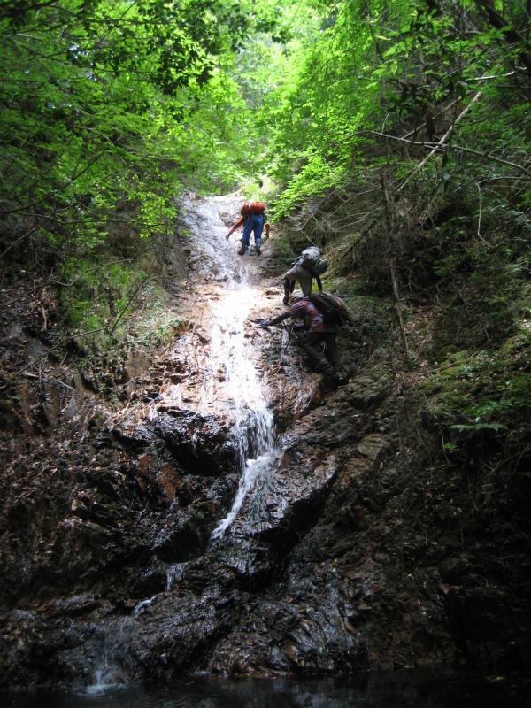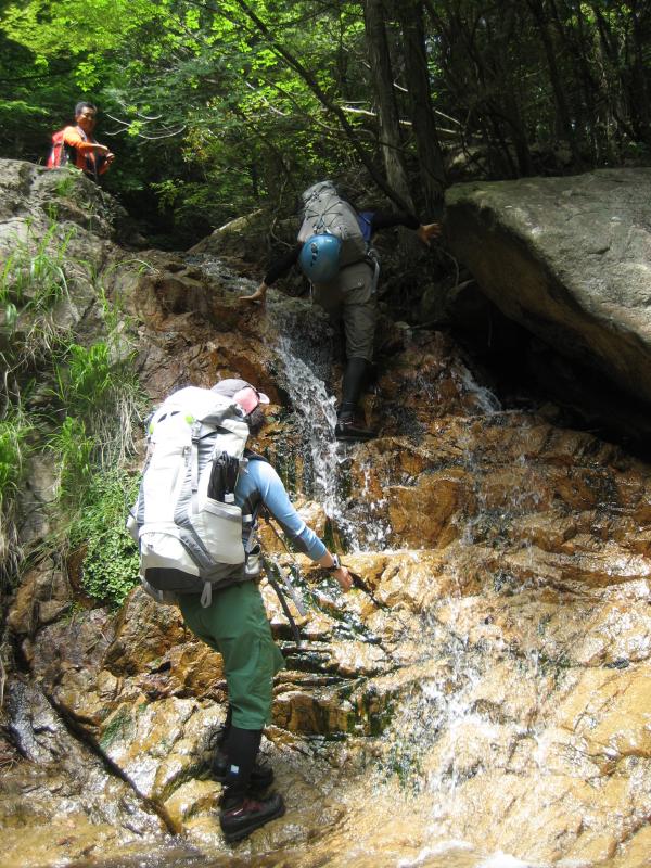 全体的に水量は少なめ 所々ポチャンポイント有 いきなりはまってこけないように気をつけてください 所々滝みたいな所もあって楽しめました