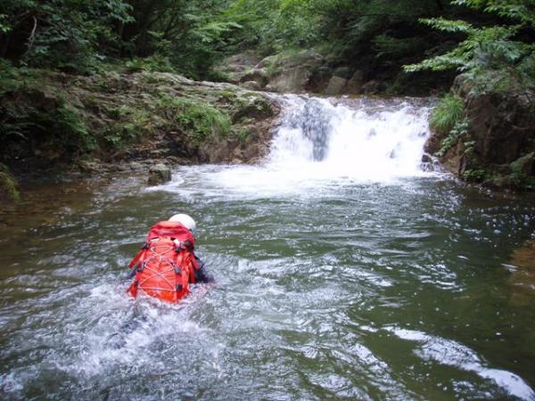 横に林道があり危ない所は逃げられる安心感はありますが、流れが急な所もありますので、パーティーで1本は必ずロープを持ちましょう。