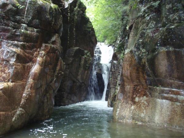 しまいにはゴルジュの奥に行く手を塞ぐようにして不動滝が現れます。