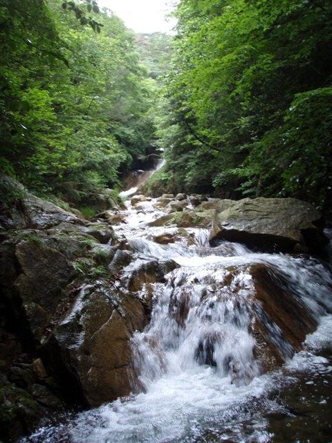 最初は川のような感じの茶園谷ですが、少しずつ沢っぽくなり、ナメや小滝が出てきて、