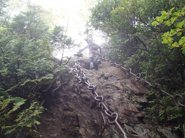 - 鎖場まではほとんど舗装された階段が続くのですが、後半怒涛の4つの鎖場が待ち受けます。