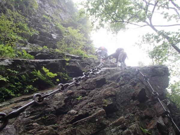 私たちが行った時は前日が雨のため、岩も鎖も濡れて滑りやすくなっていました。第三の鎖はほぼ直角に見える?ほどの傾斜なので体力に自信のない方、岩や鎖が滑りやすい時は迂回路をご利用ください。