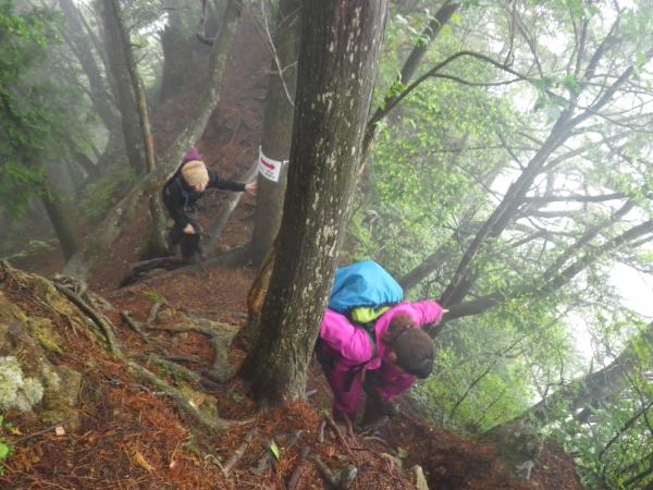 - 朝から霧雨でずーっとウェット。岩も濡れていて滑りやすい。