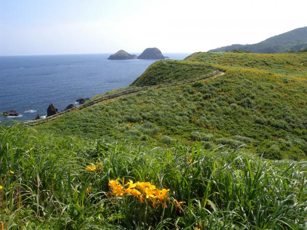トビシマカンゾウに感激!この群生は一見の価値ありです。そう大野亀は、トビシマカンゾウが約40万本も咲く日本一の群生地です。