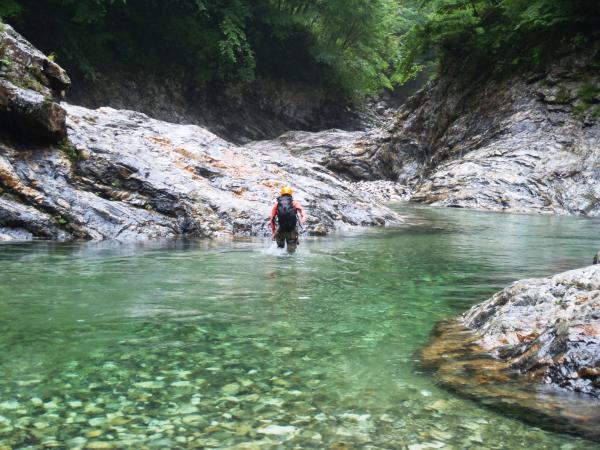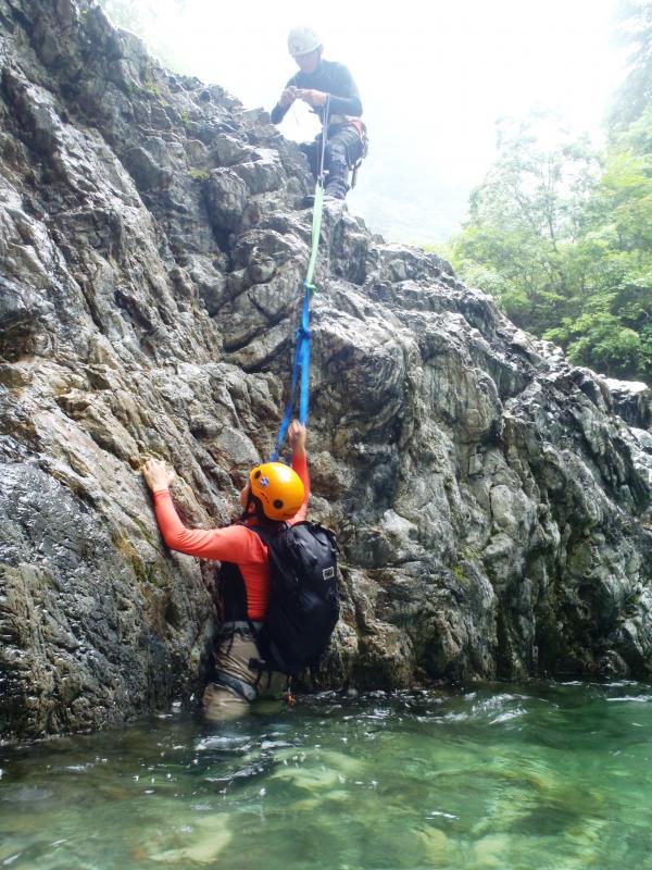 この沢は泳ぎがあるため、泳げない私には必需品、ライフジャケットの出番です!