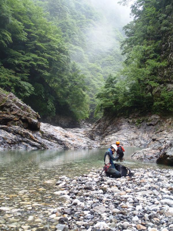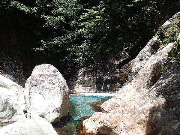 - 林道(P) ―20分― 入渓ポイント ―80分― 50m長瀞 ―45分― 巻き道 ―35分― 林道(P)