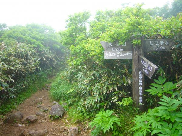 - 【磐梯山】八方台登山口(7:00)→分岐(7:25)→お花畑(8:20)→弘法清水小屋(8:30)→磐梯山頂上(8:50)~休憩(9:00)~弘法清水小屋(9:15)→分岐(10:00)→八方台登山口(10:20)