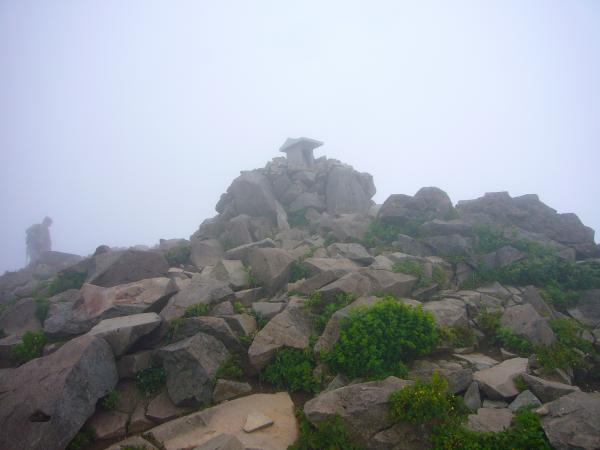 お天気は生憎の曇り空…ま、まぁ雨に降られないだけいいか(--;)と思いながらの出発。山頂も残念ながらガスで眺望は望めず(--;;)