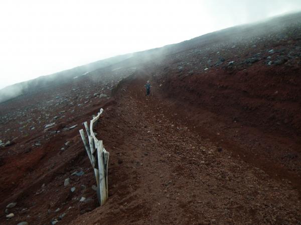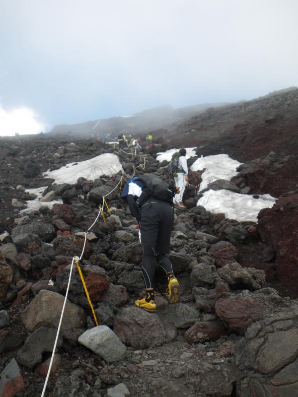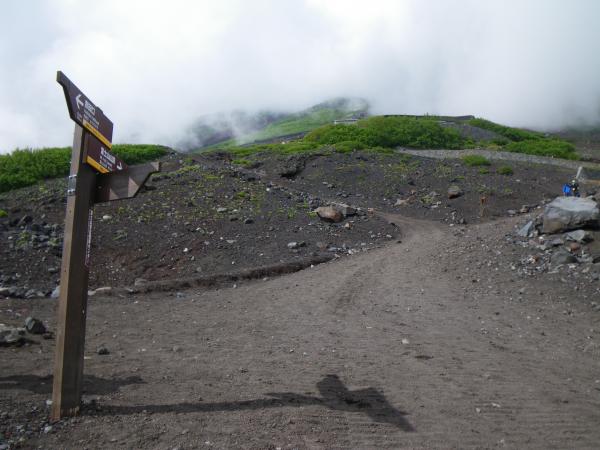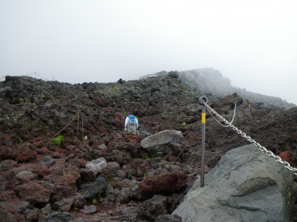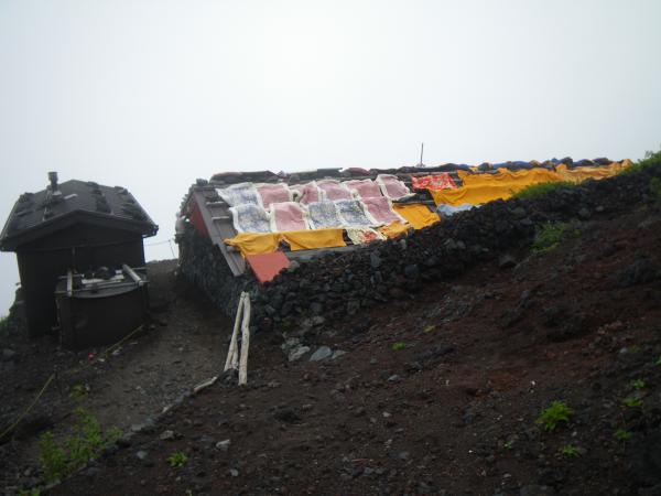②最初はガスが出ており、やや肌寒い感じだったが、8合目までTシャツ1枚で十分だった。8合目から先はジャケットなどもう一枚欲しく、頂上付近は快晴でまたTシャツ1枚。