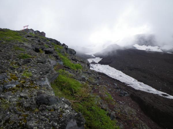 ⑤富士宮口浅間神社~剣ヶ峰に残雪あり。お鉢巡りの剣ヶ峰下部が雪道になる。