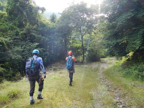 大滝の核心部には残置ロープがあったり、堰堤の高巻き下降にもフィックスロープがあったりと初心者にもやさしい沢です。