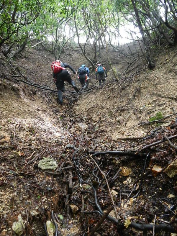 稜線に出たら登山道を通って下山ですが、水沢峠からの下りは、一部登山道が崩れていて沢筋を下りました。