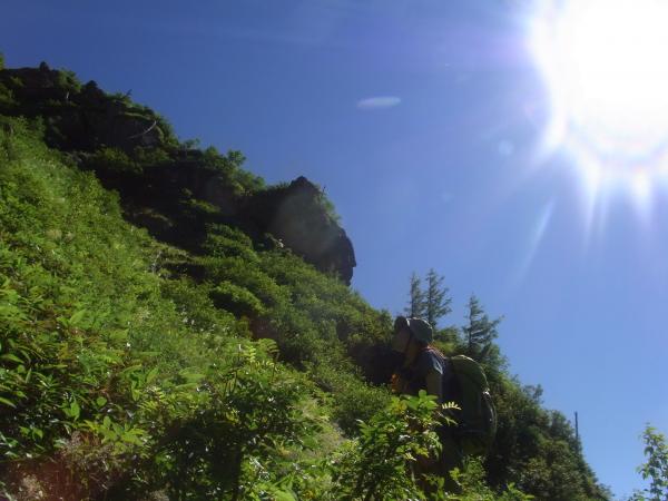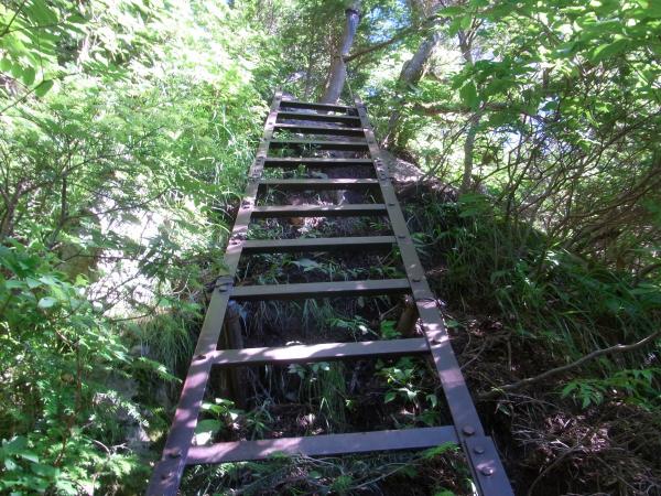 - ハシゴが連続するルートでした。山頂直下はかなりのガレ場でした。