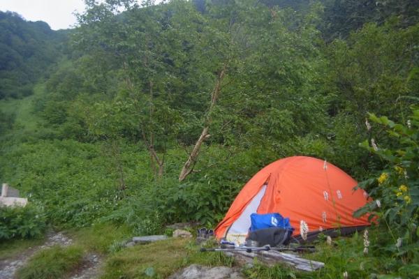 下りは草すべりのコースを歩き、テントを回収し広河原に下りました。