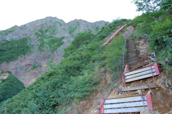 - 地蔵尾根、文三郎尾根はハシゴが連なる急で険しいルートです。
