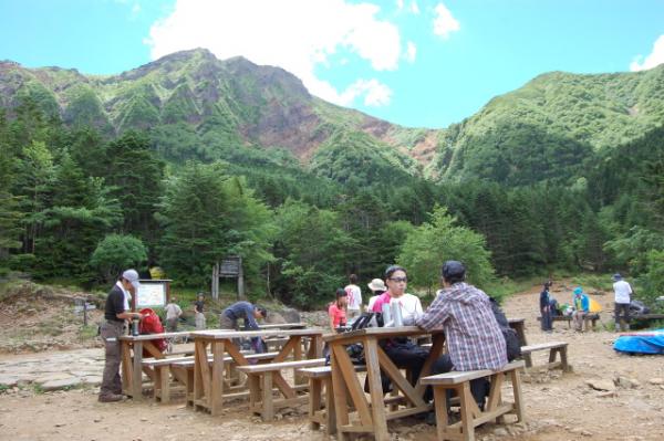 - 1日目 美濃戸口<0:50>美濃戸<2:00>行者小屋<0:50>地蔵の頭<1:45>硫黄岳<1:20>赤岳鉱泉<0:45>行者小屋