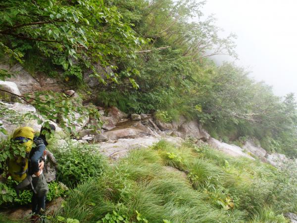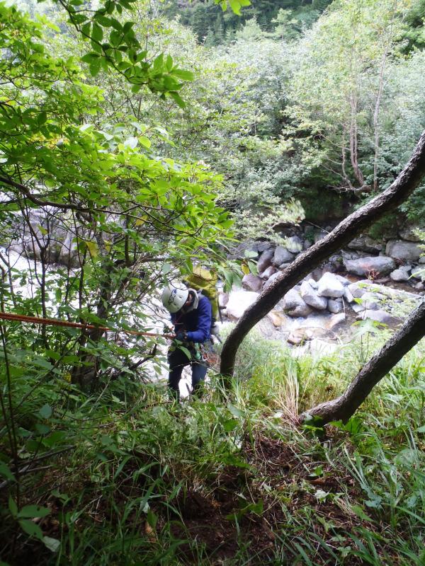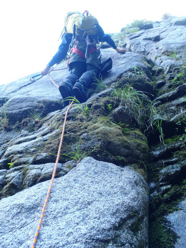 10cm幅しかないヌカるんだ絶壁を1歩1歩と草を掴みながら滝を巻く時の