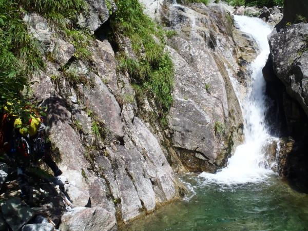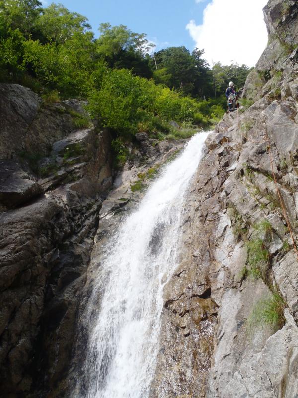狭くなったゴルジュ内に7m、15m、15mと滝が現れ、またCS10m滝、30m滝、