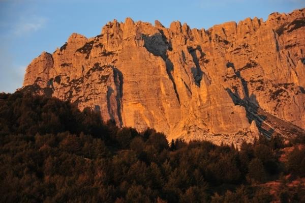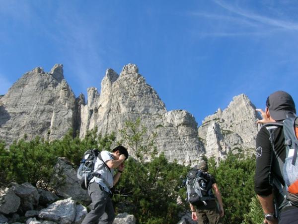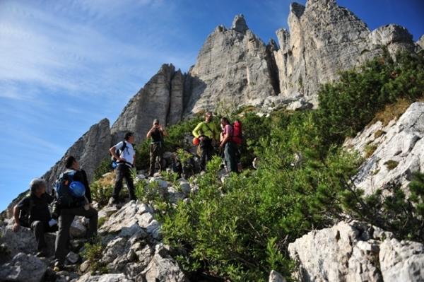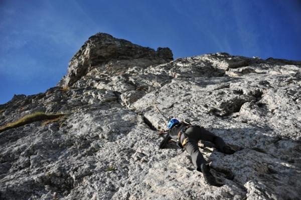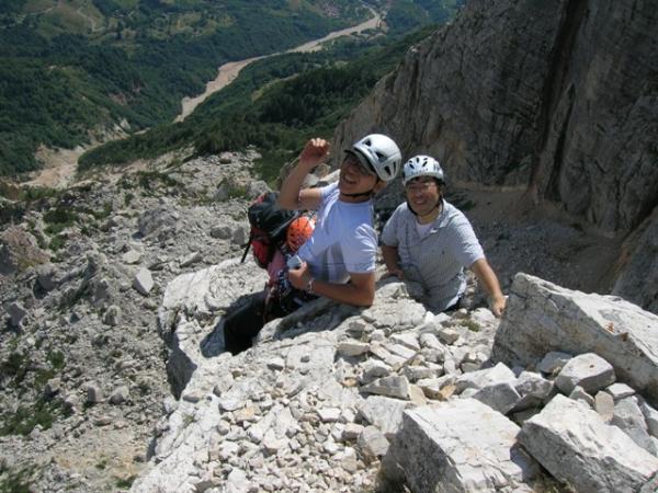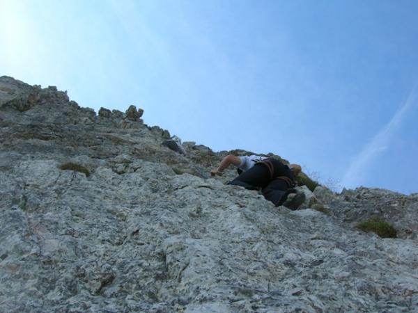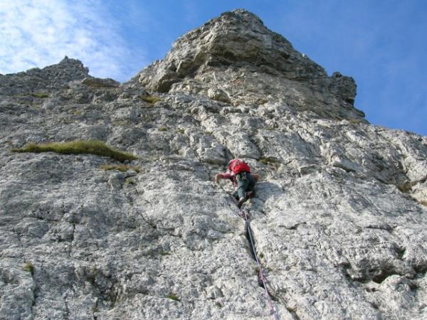 天候に恵まれ最高の山とコンデションのなかカウベルののどかな調べとともに小屋から30分ほどでブナの森を抜け目指す岩場へ到着、十何年ぶりの岩登りに少し緊張、、、澄み切った空気と山容に大満足でした。