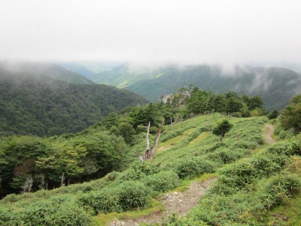 今回は霧が濃く寒かったのもあり、剣山山頂からジロウギュウ峠へは行けませんでしたが、天気が良いと非常に気持ちの良い稜線を歩けます。