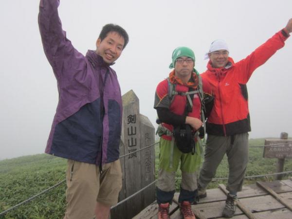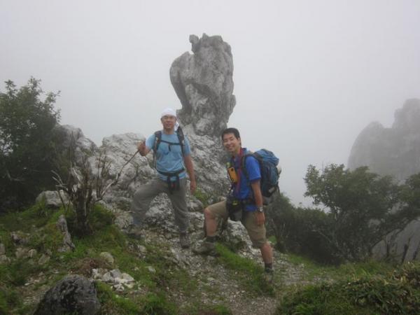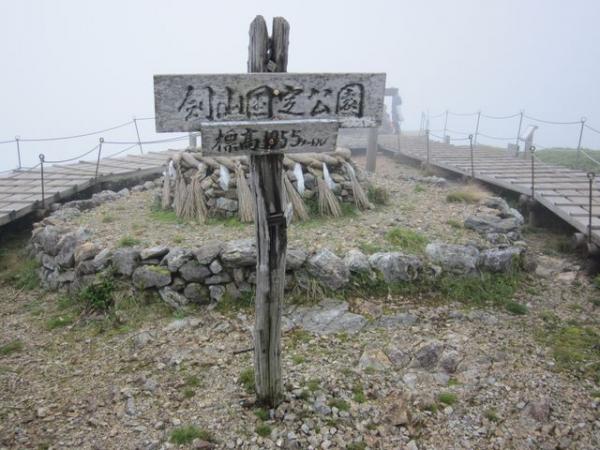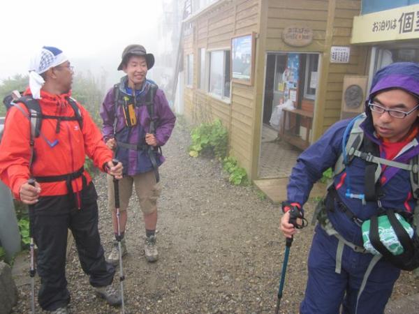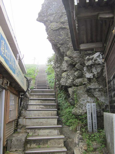 登り始めは日差しも強くなく涼しいくらいで非常に快適に登っていましたが、山頂に近づくにつれ徐々に霧が濃くなり、山頂では霧雨と風で非常に寒かったです。
