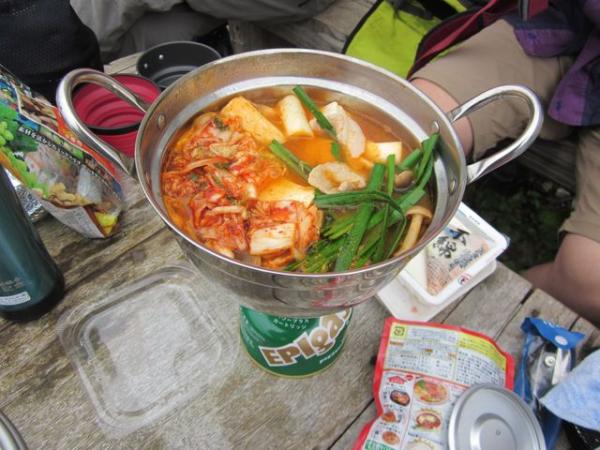 天気が良ければ一の森かジロウギュウ峠まで足を伸ばす予定でしたが、今回は断念し山口さんが準備してきてくれたキムチ鍋を堪能しました。