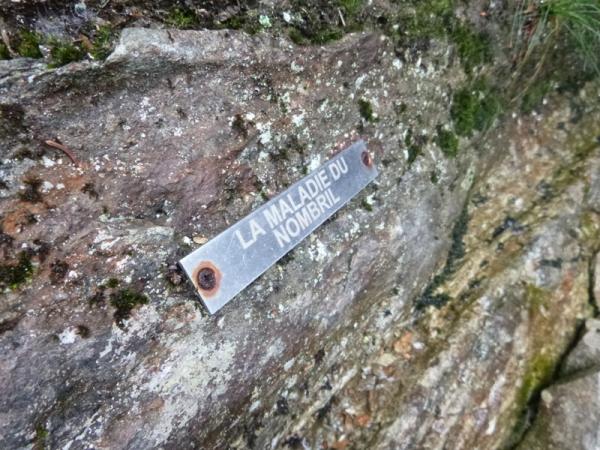 岩場には各ルートにルート名の金属板が埋め込まれており、