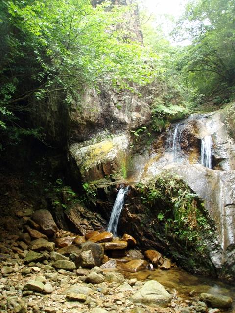遡行開始後すぐに現れる切り立った壁のゴルジュと、釜滝2段20mが見所。