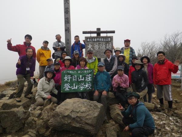 視界は今ひとつでしたが研修登山としてはいい機会でした。安心、安全に楽しく登山をするために私達は率先して学び、楽しみ、登山の良さを広めて行きたいと考えています。