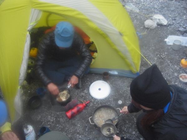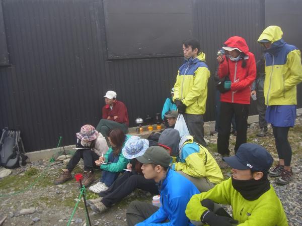 頂上宿舎のテント場はよく整備されており快適ですが日中でも冷えます。じっとしている時はダウンジャケットやフリースジャケットが必要です。