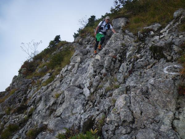クリヤ谷ルートを下山で利用するとガレ場から始まり、途中から笹の葉で足元が見づらく、岩場は濡れてると滑りやすく道幅も狭いです。