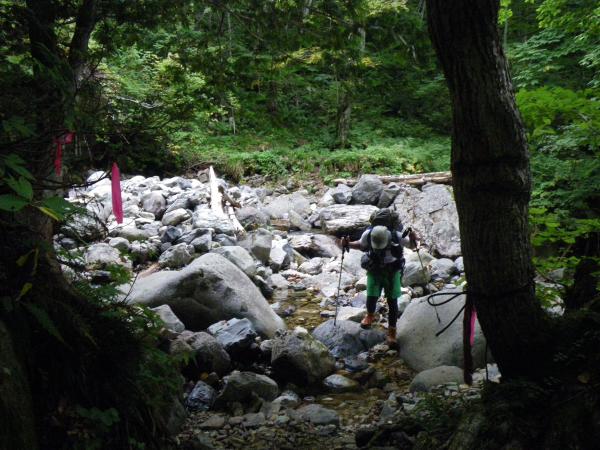 笠新道分岐で水を汲めば良いと思った友人の期待を裏切り、笠新道分岐の水場は枯れてました。