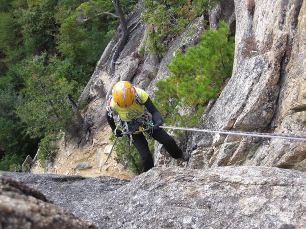 1日目はその練習として、マルチピッチのシステムの確認をこめて、ガマルートを登りました。