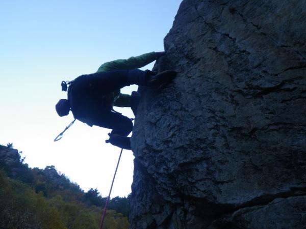 ガマルートは全体的に難しい所はありませんが、6P目はハンガーなし。NPも取れそうにないスラブを登ります。少し登ったところにカムはセットできます。気持ちとの戦い?です。