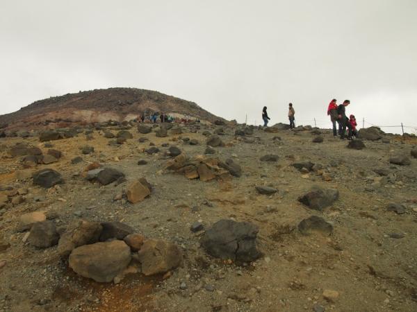- ロープウェイ山頂駅から茶臼岳までは砂礫の道で頂上付近は浮石が多い。