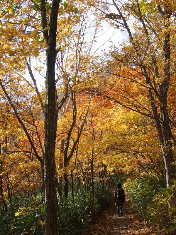 紅葉はピークを過ぎているらしいが、駐車場~峰の茶屋跡あたりの比較的低い山肌は見事に色付いていて充分に楽しむことが出来た。