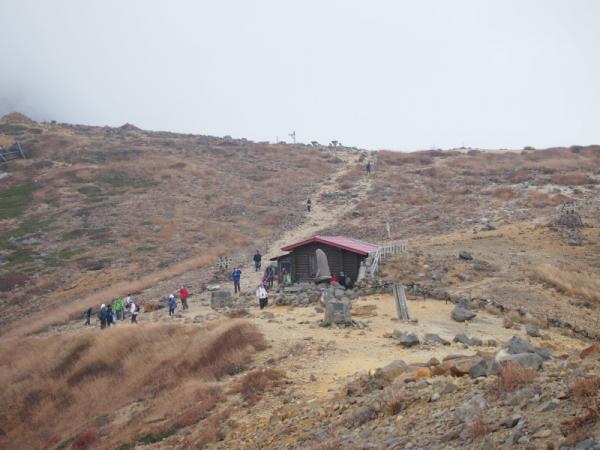 - 1日目:那須ロープウェイ山頂→(30分)→茶臼岳→(30分)→峰の茶屋跡→(70分)→三斗小屋温泉 計130分(2時間10分)